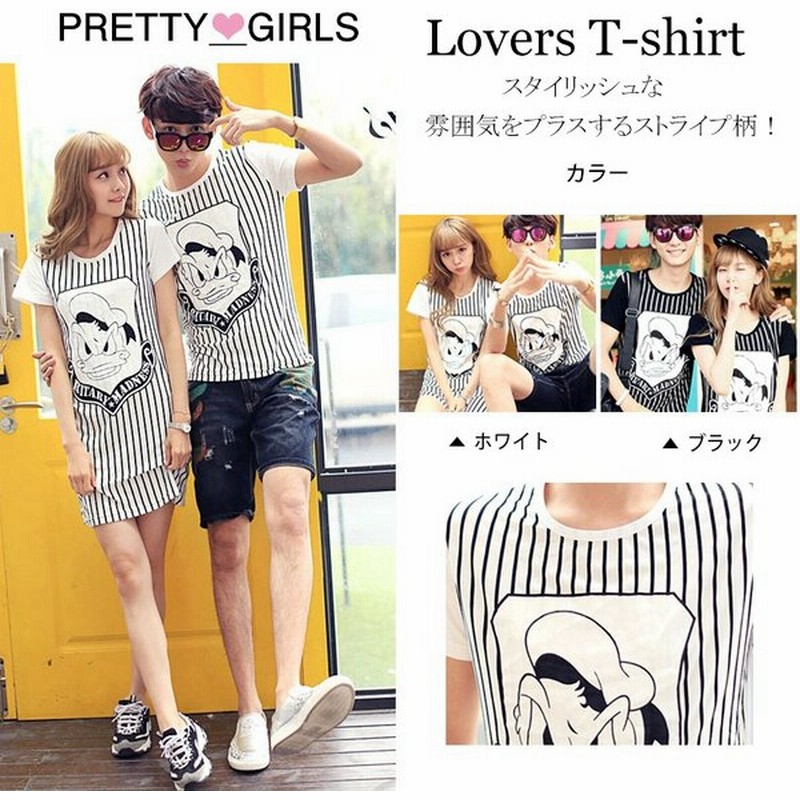 ディズニー Tシャツ ペアルック tシャツ ペアルック カップル ペア tシャツ レディース ワンピース 春夏 半袖 ストライプ 通販 Lineポイント最大0 5 Get Lineショッピング